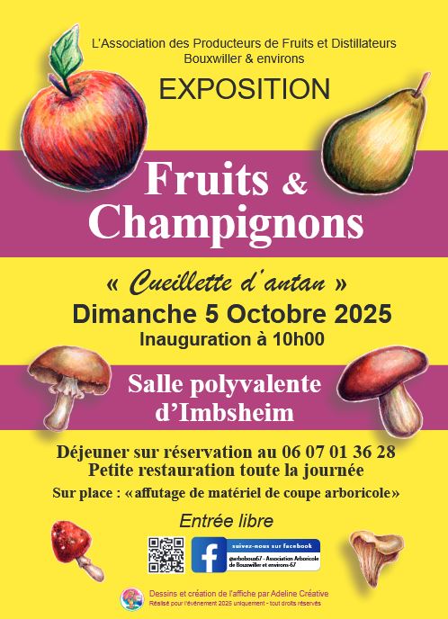 ![]() Imbsheim | Exposition "Fruits & Champignons – Cueillette d’antan" L’ Association Arboricole de Bouxwiller et environs -67 vous invite à une journée placée sous le signe des saveurs et de la découverte de la nature ! Dimanche 5 octobre 2025 ⏰ 10h00 Salle polyvalente d’Imbsheim Au programme : ✨ Une exposition riche en fruits et […] |