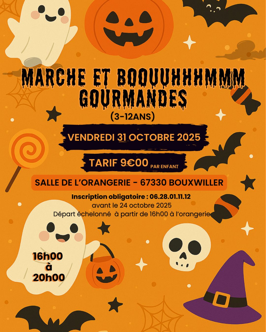 ![]() Le vendredi 31 octobre 2025, les enfants de 3 à 12 ans sont invités à une marche d’Halloween organisée par l'APEEB pleine de frissons et de gourmandises… Départ échelonné à partir de 16h00 à la salle de l’Orangerie, jusqu’à 20h00. Salle de l’Orangerie à Bouxwiller ️Tarif : 9€ par enfant ℹ️ Inscription obligatoire avant le […] |