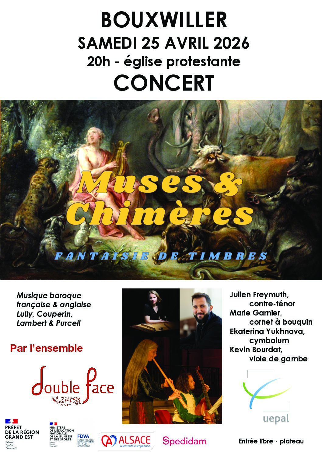 L'église protestante de Bouxwiller accueillera un concert de musique baroque le samedi 25 avril à 20h. Ce sera un concert donné par l'Ensemble Double Face. L’ensemble Double Face réunit pour la première fois sur scène un extraordinaire “brocken consort”, en convoquant l’hétérogène, les contrastes et les contraires dans le plus pur esprit “baroque” ! |