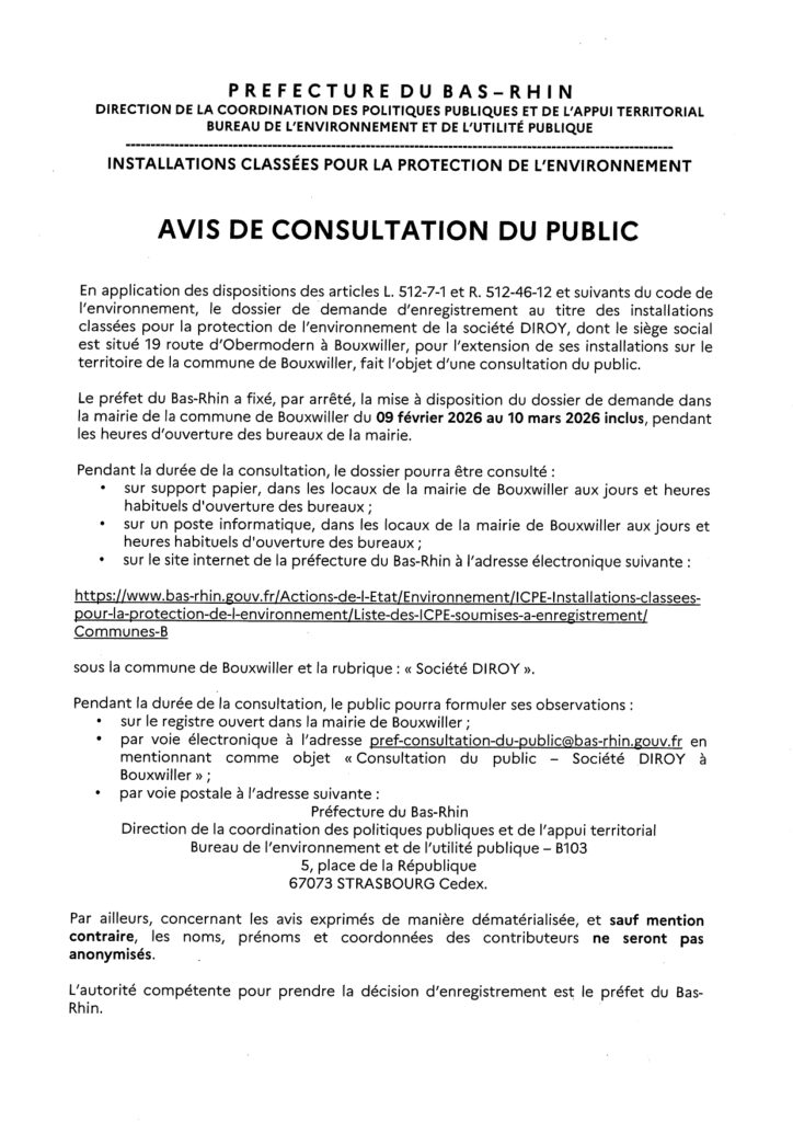 Avis de consultation du public