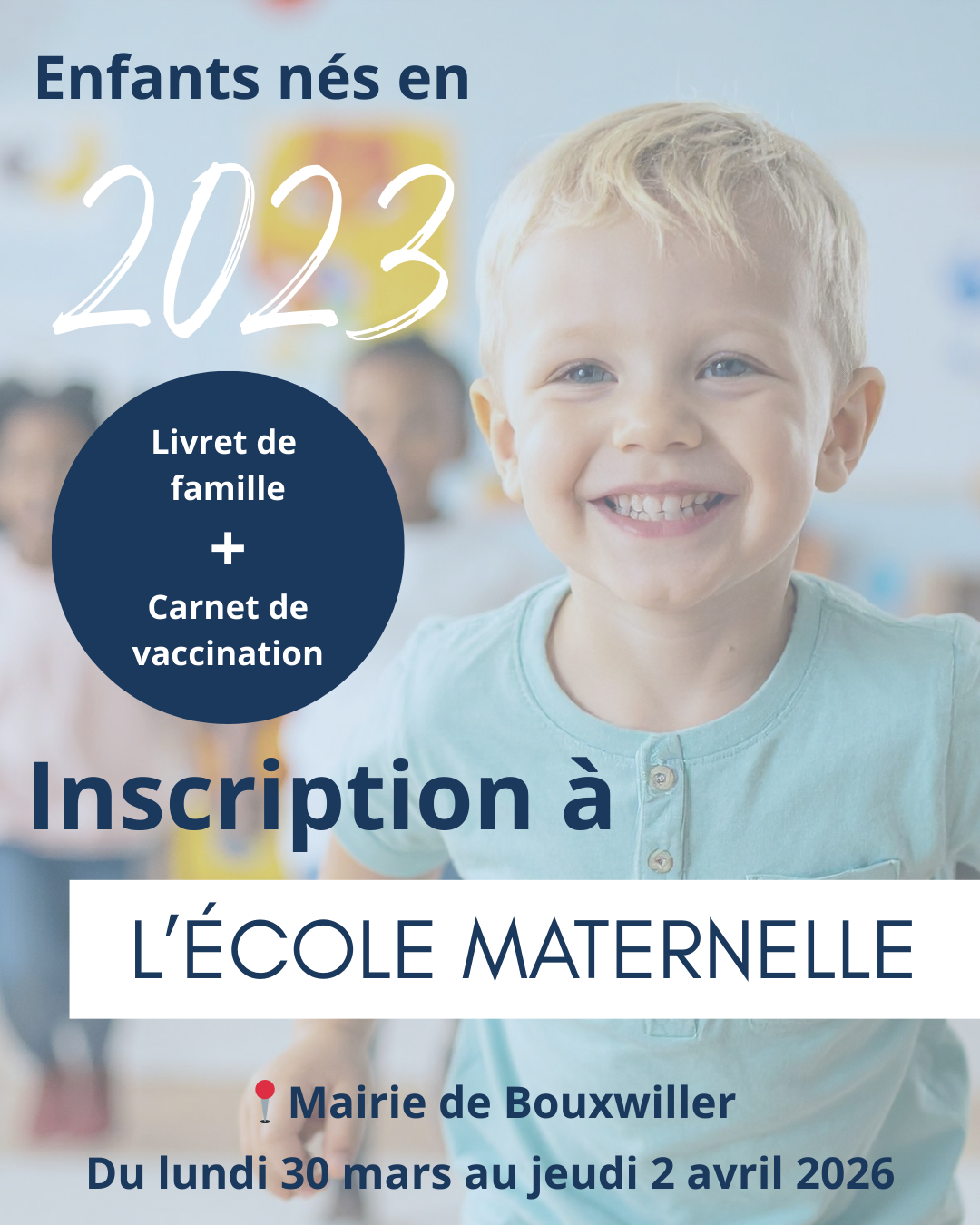 Inscription pour les enfants nés en 2023 Du lundi 30 mars au jeudi 2 avril aux horaires d'ouverture du bureau : Lundi - mercredi - jeudi : 9h-12h et 14h-17h […] |