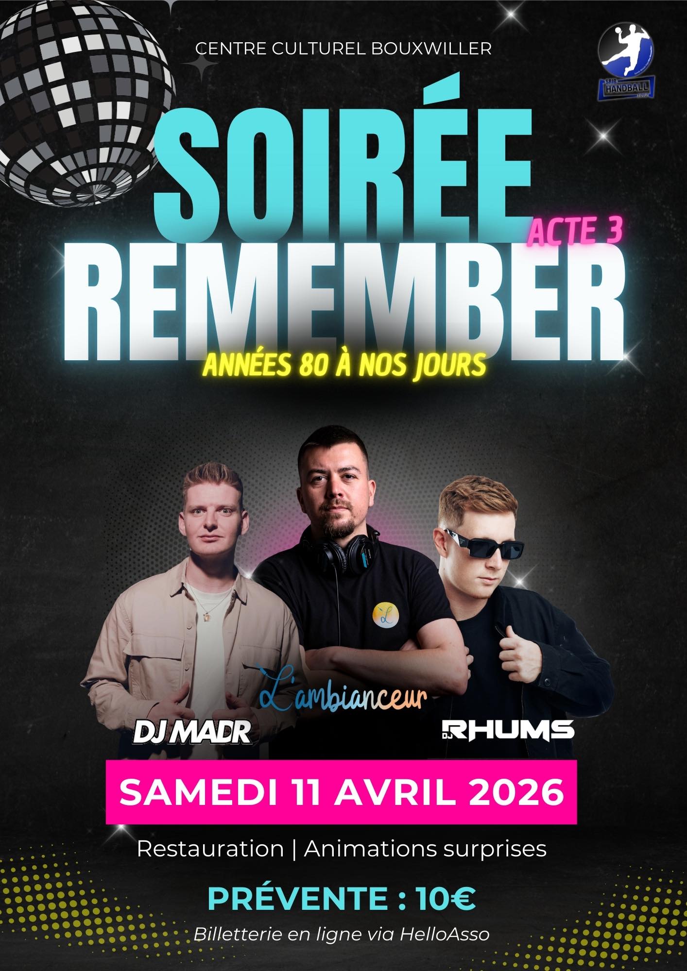 Réservation : https://www.helloasso.com/associations/srib-handball/evenements/soiree-remember-acte-3