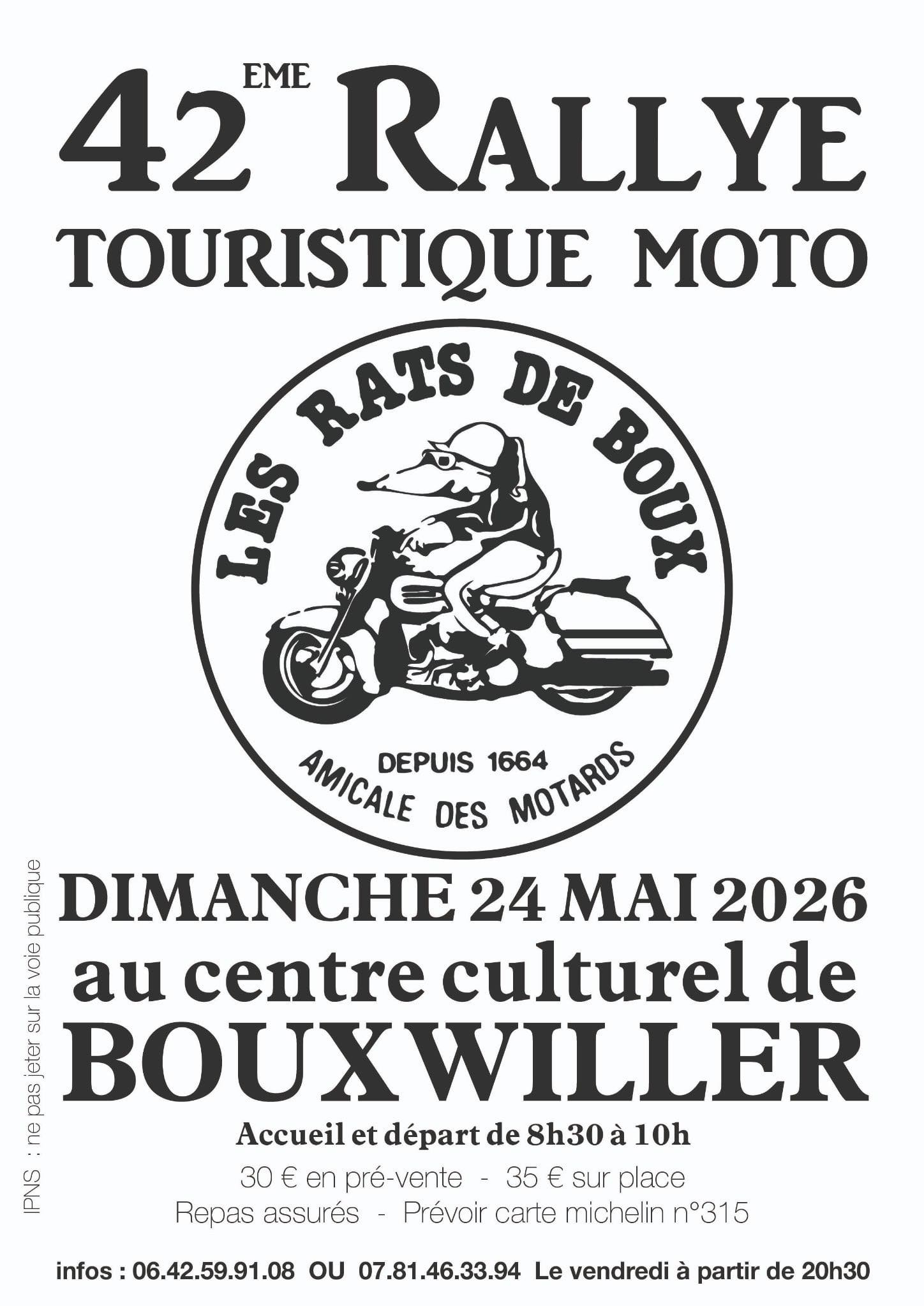 Centre culturel Marie Hart BouxwillerPassionnés de deux-roues, amateurs de belles routes et d’évasion… c’est le moment de préparer vos motos ! Les Rats de Boux vous donnent rendez-vous le dimanche 24 Mai 2026 (8 […]