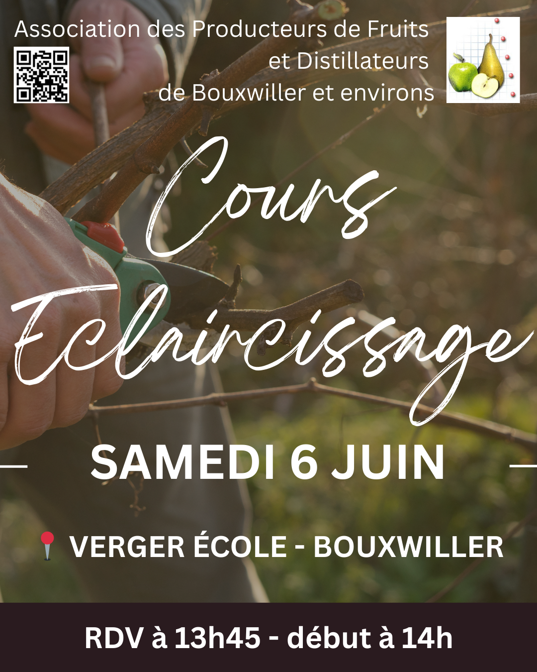 Cours d’éclaircissage et reconnaissance des maladie, auxilaires et ravageurs avec l’Association des Producteurs de Fruits et Distillateurs de Bouxwiller et environs