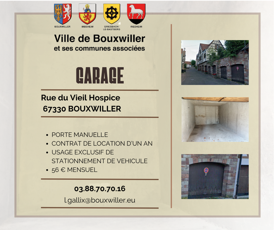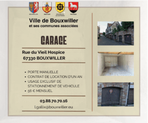 Pour plus d’informations et pour louer cette place, contactez-nous à l’adresse e-mail suivante : l.gallix@bouxwiller.eu