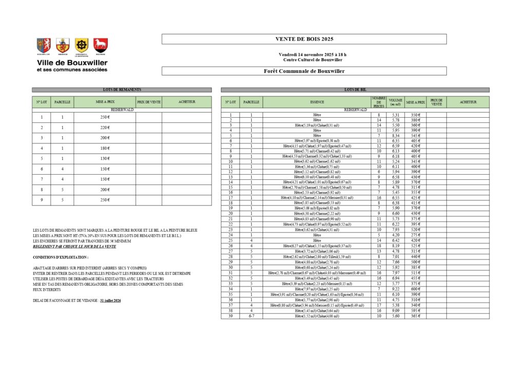 Vente de bois le 14 novembre 2025 à 18h au Centre Culturel
