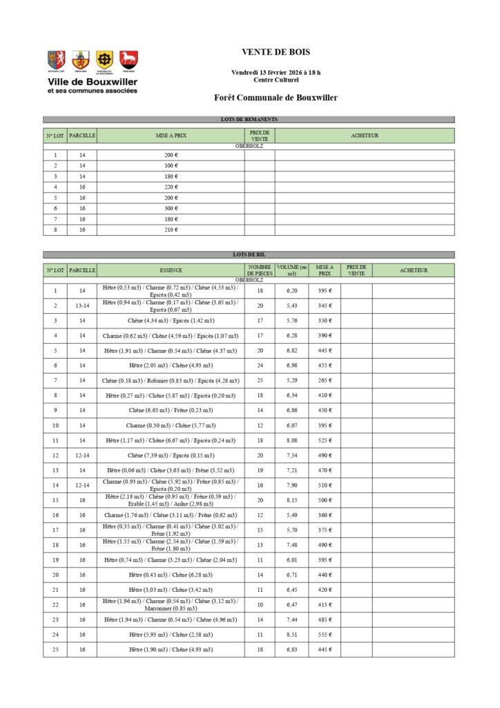 Vente de bois le 13 février 2026 au Centre Culturel